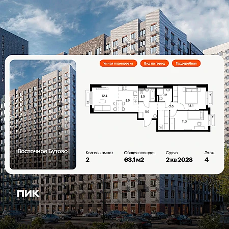 Квартира, 2-комн., 65,2 м², ТАО, (м.Ольховая) | ТАО, городской округ Троицк, г. Троицк, ул. Академика Дыхне, д. 20, этаж 3, кв. 124 | Метро: Ольховая (пешком 230 мин., транспортом 74 мин., расстояние 17.04 км)