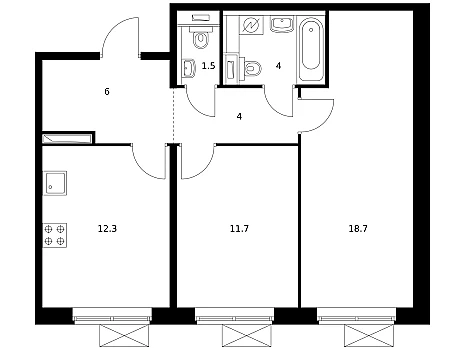 Количество комнат: 2