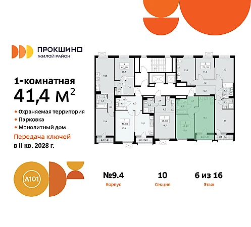 Купить 1к квартиру 41 м² в ЖК "Прокшино"