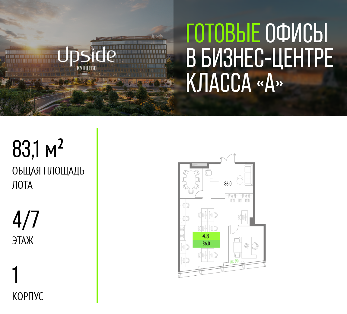 Купить офис 83 м² в БЦ Upside Kuntsevo