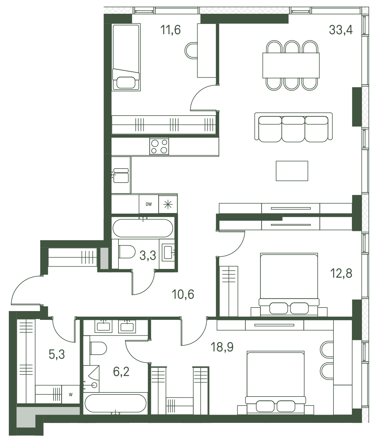 Удобная распашная планировка с идеально проработанной эргономикой пространства: просторная кухня-гостиная 21 м2, три изолированные комнаты 11/13/12м2, вместительный коридор, два с/у. В квартире грамотно поделено пространство на приватную и общественную зоны.