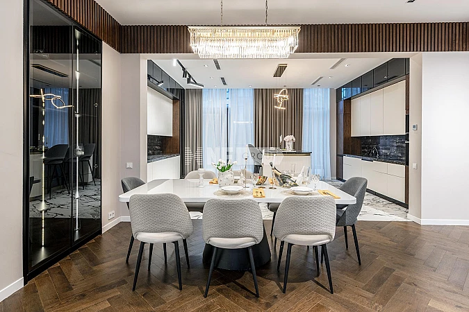 Просторный таунхаус с панорамным остеклением и эксплуатируемой крышей, расположенный в живописном поселке ЖК Park Fonte на Новорижском шоссе, всего в 23 км от МКАД. Дом оформлен по дизайн-проекту с использованием премиальных материалов и полностью меблирован.