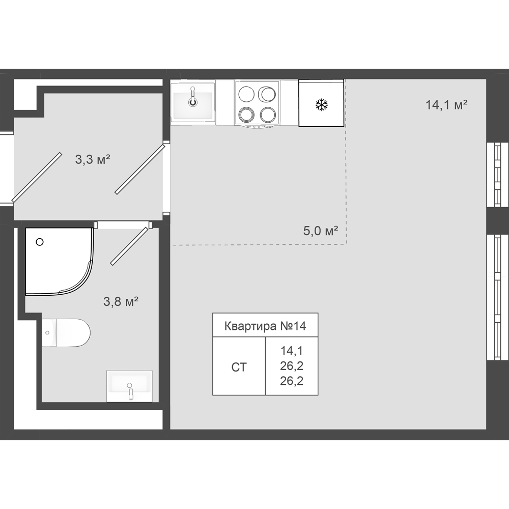 Продается студия площадью 26.2 кв.м. на 2-м этаже