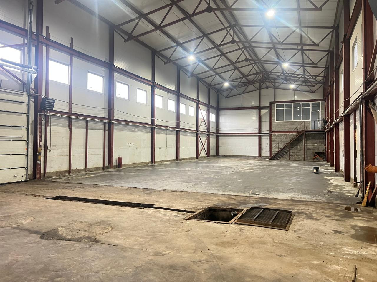 Производственно-складское здание общей площадью - 660 кв.м. Здание отапливаемое, построено из сендвич-панелей. Рабочая (до ферм) высота потолка от 8,4м до 10 м. Пол - шлифованный бетон с антипылевым покрытием. Двое больших (под въезд фуры) ворот в ноль. Выделенная электрическая мощность - 100 кВт. Имеется встроенное, двухэтажное АБК площадью - 65 кв.м. Вода, канализация - центральные. Интернет.