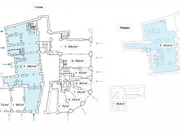 Аренда помещения торгового или свободного назначения (ПСН) на 1 этаже и подвале нежилого здания. Отлично подойдёт под любой вид деятельности — торговое помещение, магазин, ресторан, кафе, аптека, салон красоты, банк, офис продаж, кофейня и др. Планировка - открытая (свободная), высота потолков — до 5,5 м, перекрытия — ж/б.
