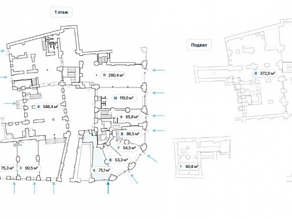 . Отдельные входные группы с фасада с 1-ой линии, есть входы со двора.