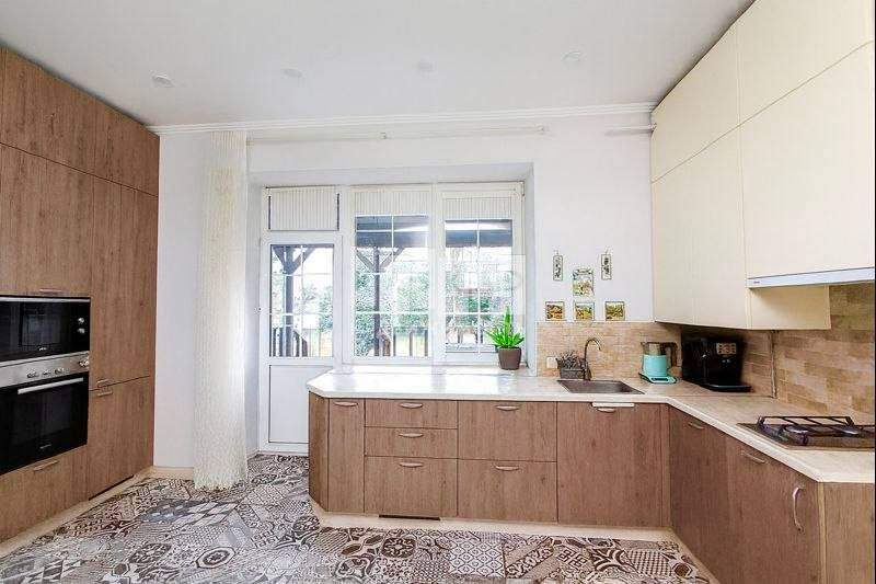 Ремонт выполнен исключительно для себя, поэтому использованы только качественные материалы: испанская и итальянская плитка; техника Bosh; лестница из массива дуба с испанскими изразцами.