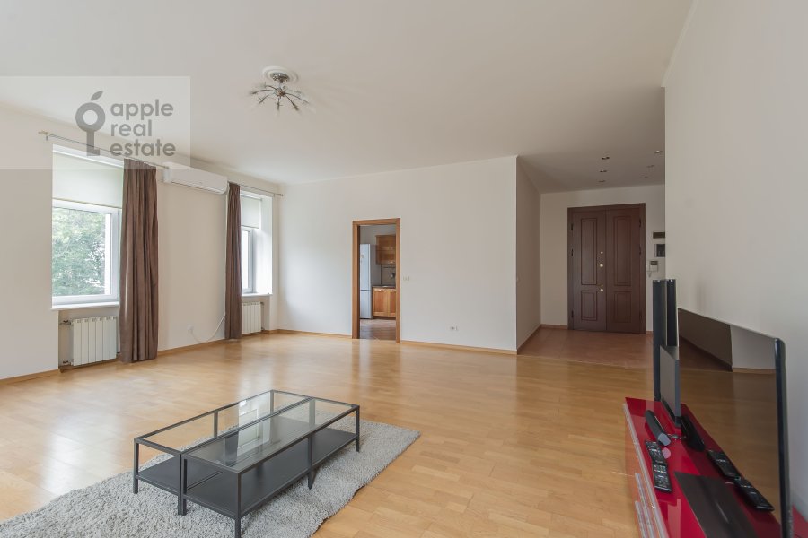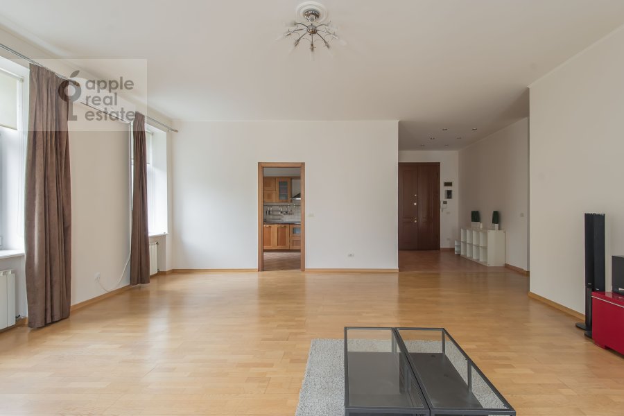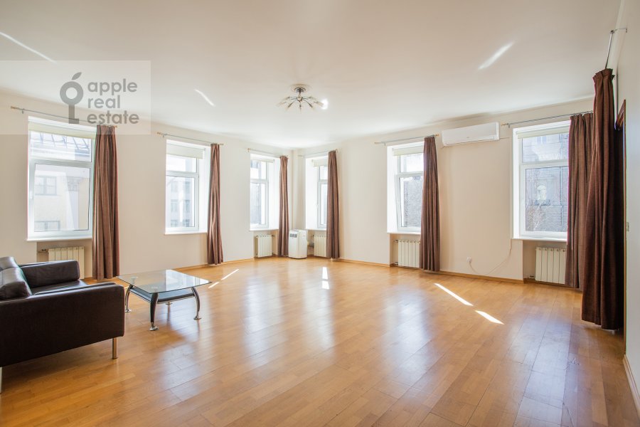 Продается просторная четырехкомнатная квартира в историческом районе Москвы в Петровском переулке. Общая площадь — 156,1 кв. м, жилая — 100,1 кв. м, кухня — 15 кв. м. Квартира расположена на втором этаже трехэтажного дома 1900 года постройки. Высокие потолки 3,4 метра создают ощущение простора.
