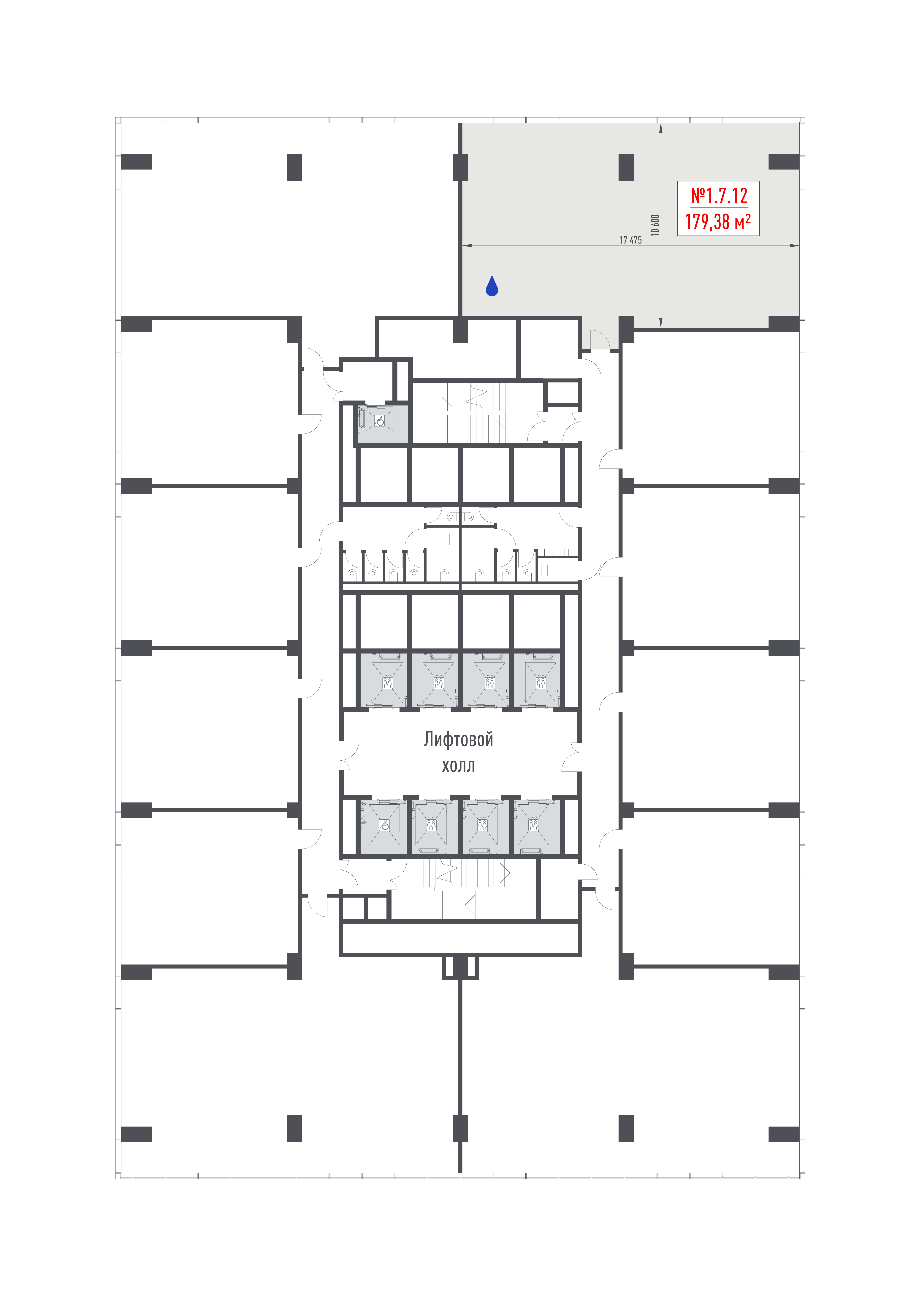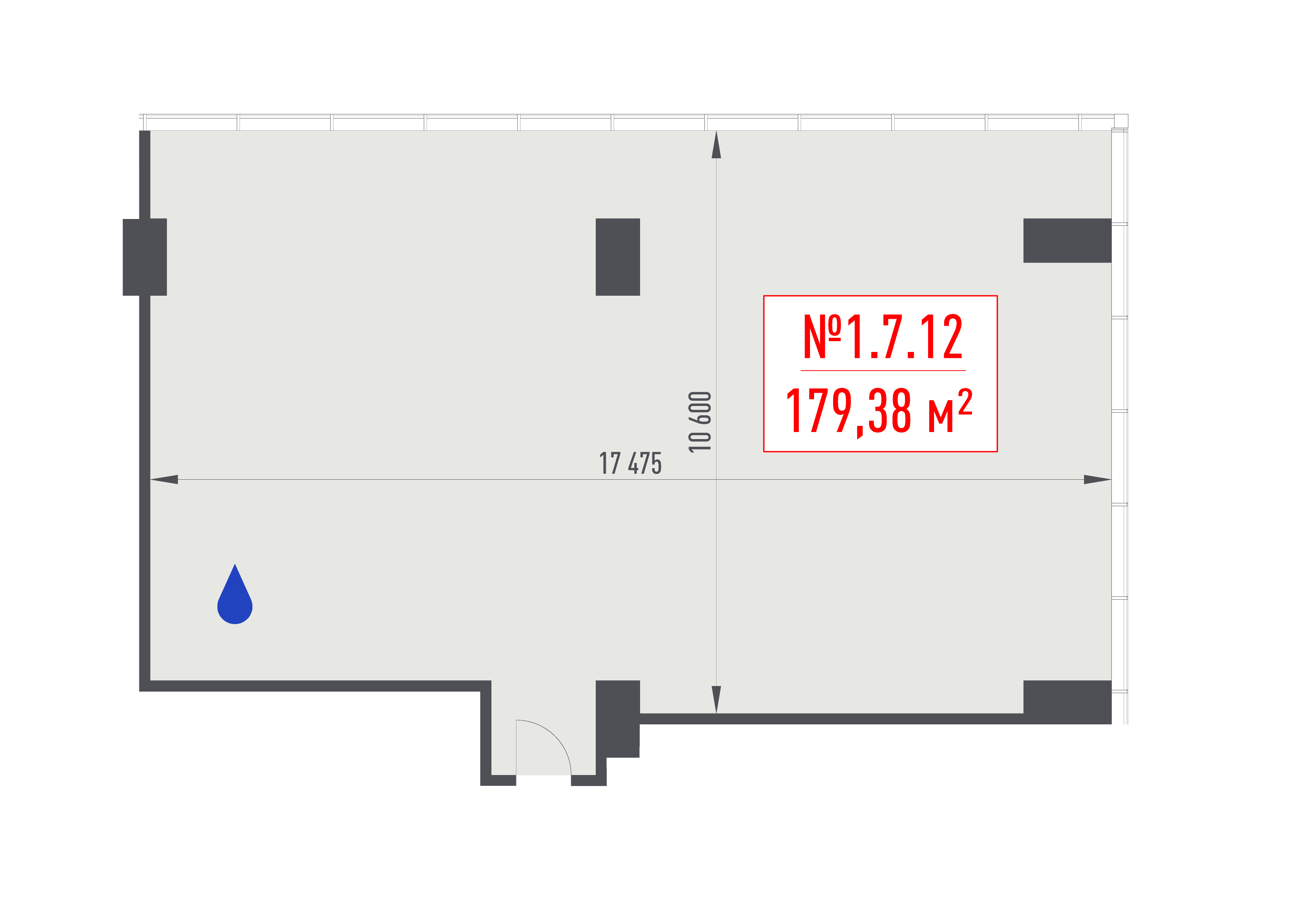 172 м² на 1 этаже 9-этажного здания. Высота потолков — 4,25 м.
