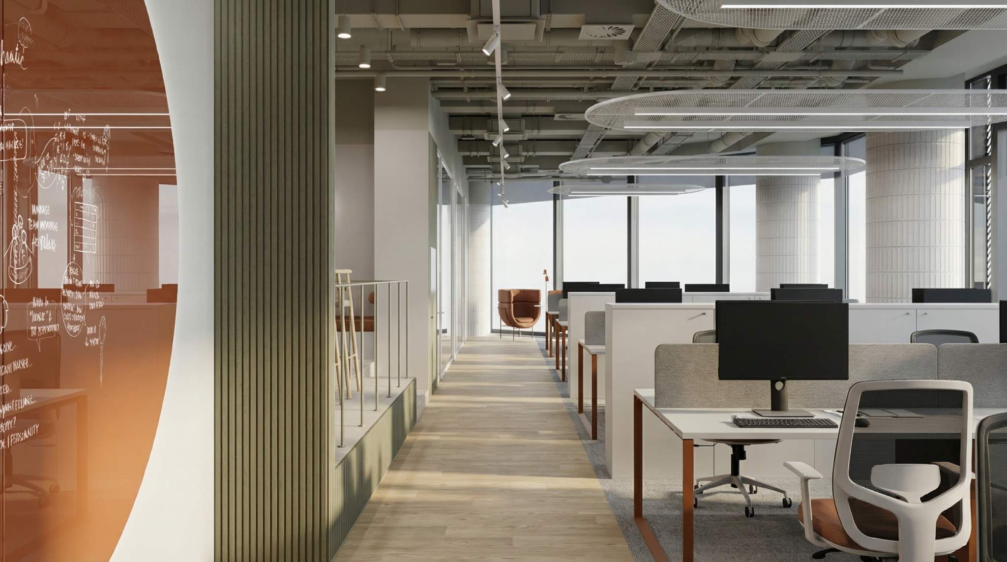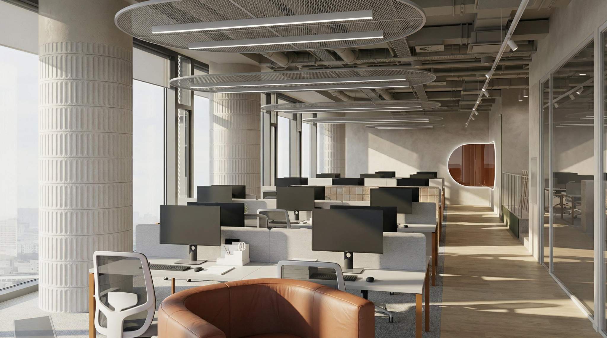 Планировка - смешанная. Приточно-вытяжная вентиляция. Центральное кондиционирование. Интернет, телефония. Охрана. Видеонаблюдение. Система контроля доступа. Лифты: 11 пассажирских лифтов , 9 скоростных панорамных лифтов Otis, 3 грузопассажирских. Отдельный вход. Подземная парковка. Наземная парковка.