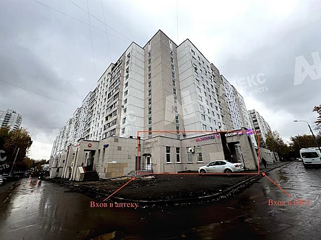 Два витринных окна, вход с фасада.