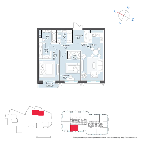 Купить 2к квартиру 84 м² в ЖК Татарская 35
