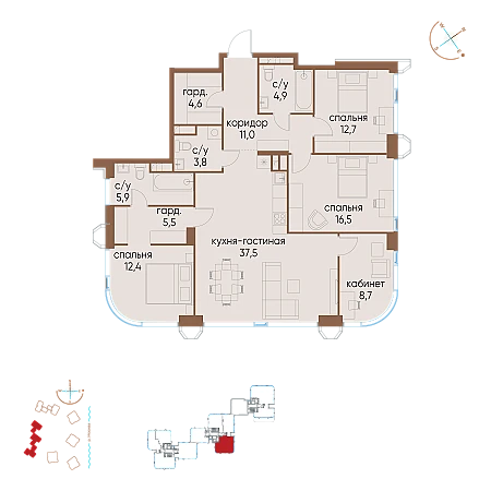 3к квартира 104 м² в ЖК Клубный город на реке Primavera (Примавера)