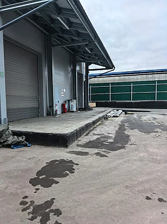 Пoлы-антипыль, монолит плита + промышленная стяжка (топинг). В каждом здании установлены ворота с подъемными механизмами по 2 шт, габаритные размеры (3, 6 х 4 м).