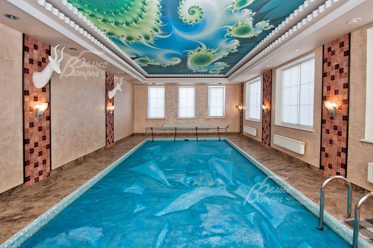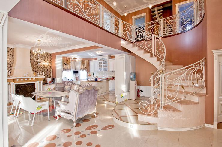Изысканный дом в стиле ар-деко уровня De Luxe с большим бассейном. Эксклюзивная отделка и мебель. Венецианская штукатурка, гобелен, лепнина, фрески, лестница, подоконники и столешница кухни из мрамора, бытовая техника Miele. Гараж с квартирой для персонала, беседка, парковка для 2-х м/м, большая терраса на 2-ом этаже, сауна, камин. Видеоролик