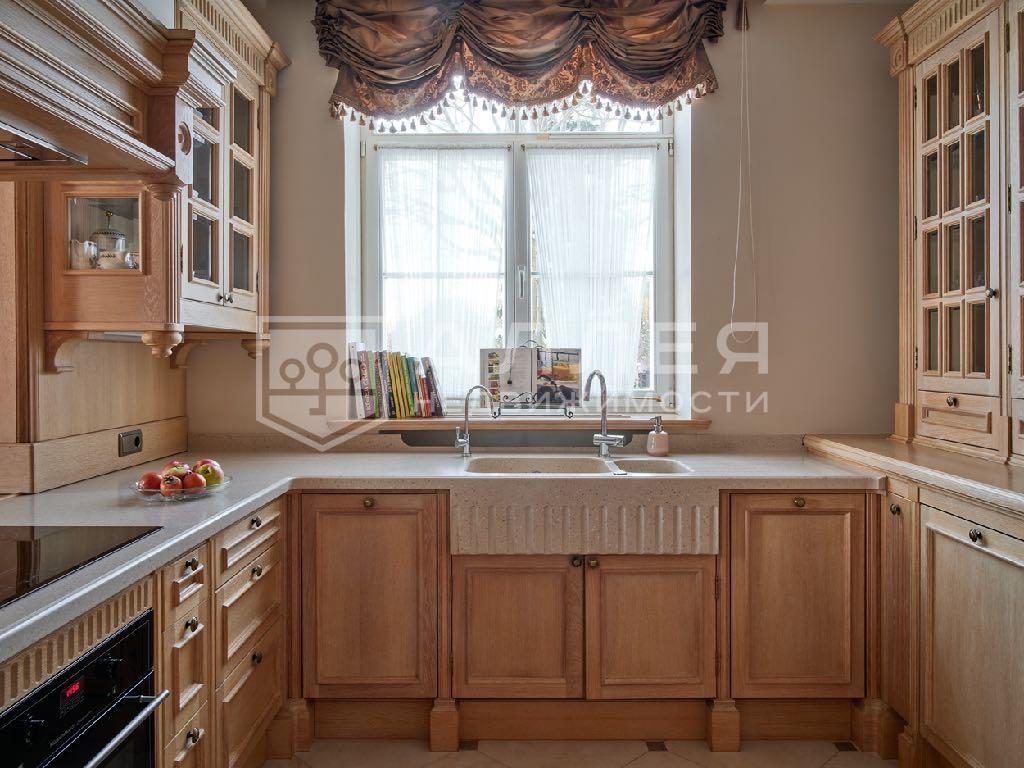Современный дом выполненный в архитектурном стиле английской классики. Интерьер дома выполнен в теплых коричнево-бежевых тонах, с использованием натурального дерева в дизайне. В доме установлена современна мебель и техника премиального качества.