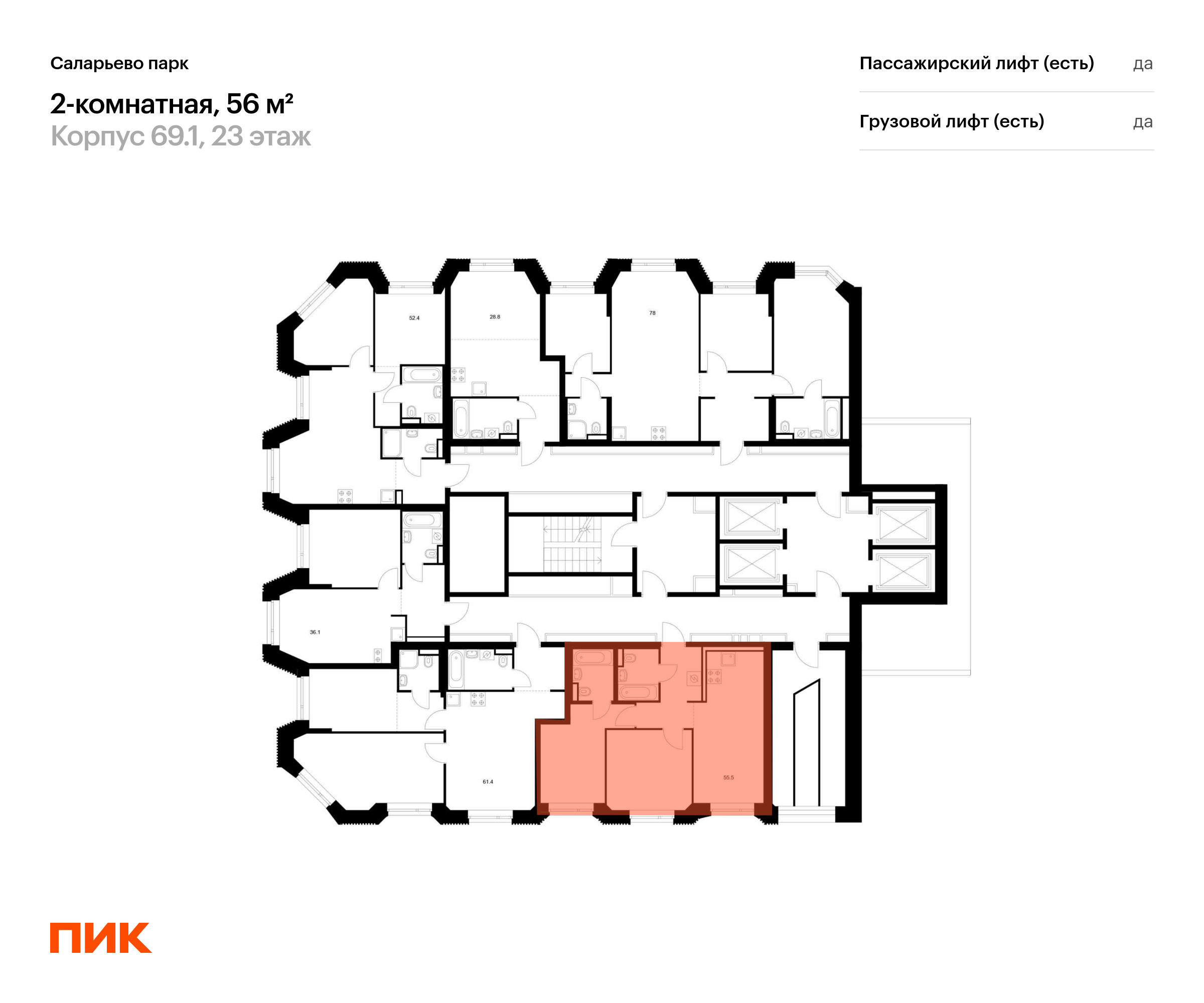 Продаётся 2-комн.квартира площадью 56.00 кв.м на 23 этаже 23 этажного дома (Корпус 69.1, секция 1) проекта ПИК Саларьево парк. Светлый просторный подъезд на уровне земли, функциональная планировка, большие окна, с отделкой.