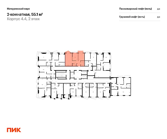 Продаётся 2-комн.квартира площадью 55.10 кв.м на 2 этаже 23 этажного дома (Корпус 4.4, секция 1) проекта ПИК Мичуринский парк. Светлый просторный подъезд на уровне земли, функциональная планировка, большие окна, с отделкой.