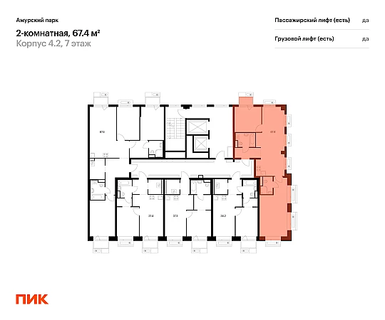 Продаётся 2-комн.квартира площадью 67.40 кв.м на 7 этаже 12 этажного дома (Корпус 4.2, секция 1) проекта ПИК Амурский парк. Светлый просторный подъезд на уровне земли, функциональная планировка, большие окна, с отделкой.