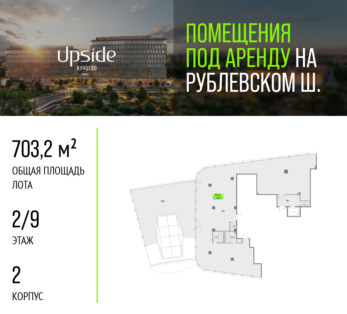 Снять ПСН 703 м² в БЦ Upside Kuntsevo