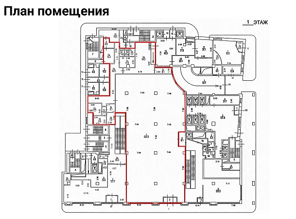 Освобождается по запросу. Отдельный вход. Этаж: 1. Планировка: открытая ( open space ). Типовой ремонт. Высокие потолки. Высота потолка: 4.3м. Тип налогообложения: С НДС. Коммунальные платежи оплачиваются отдельно. Налоговая: 10. Лифты: Есть. Вентиляция: Приточно-вытяжная. Кондиционирование: Центральное. Безопасность: Круглосуточная охрана, Контроль доступа, Система пожаротушений, Видеонаблюдение. Провайдеры: Билайн Бизнес, Комстар.. Парковка: Подземная, Многоуровневая, Наземная. Лот 82235-125