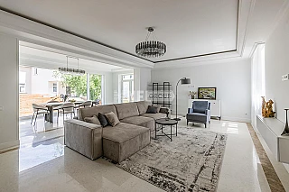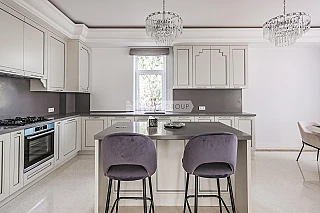 Дом полностью отделан и меблирован, готов к постоянному проживанию. Интерьер выполнен в современном стиле, в светлых, мягких пастельных тонах.