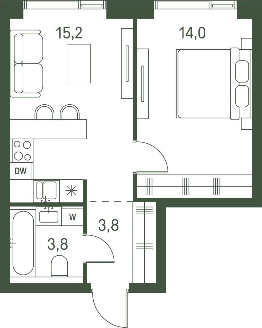 Продается 1-к. квартира номер 538 общей площадью 36.8 кв.м. на 13-м этаже 40 этажного дома, корпус 2.3. С отделкой White Box.