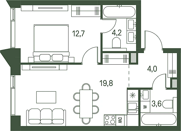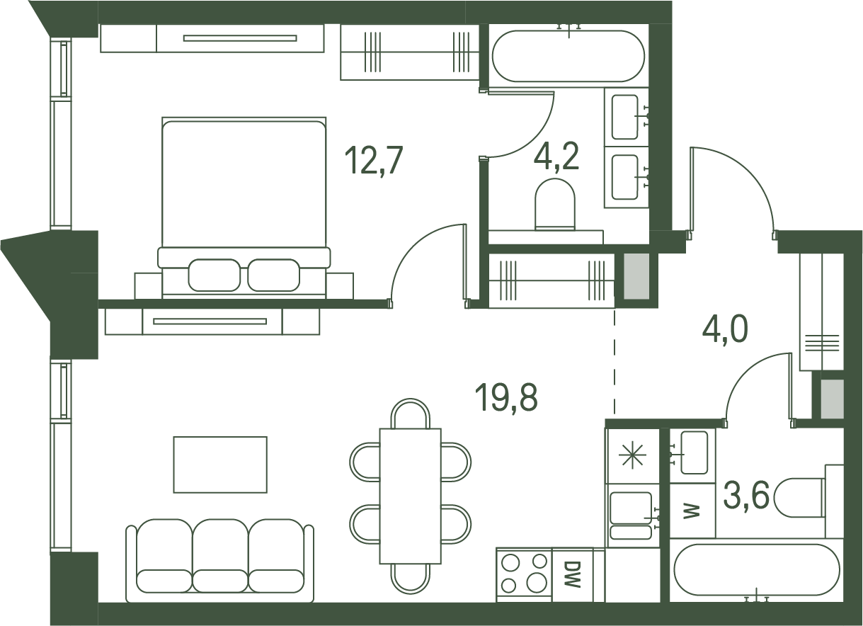 Продается 1-к. квартира номер 943 общей площадью 44.3 кв.м. на 7-м этаже 34 этажного дома, корпус 2.2. С отделкой White Box.