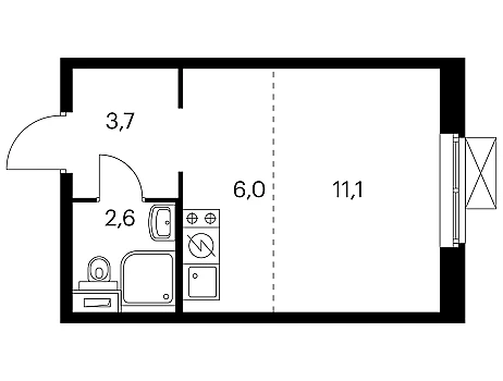 Площадь кухни: 5,9 м²
