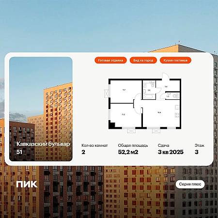 Купить 2к квартиру 52 м² в ЖК Кавказский бульвар 51