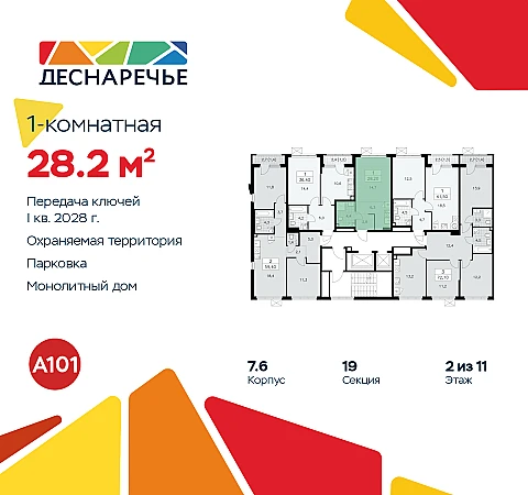 Купить 1к квартиру 28 м² в ЖК "Деснаречье"