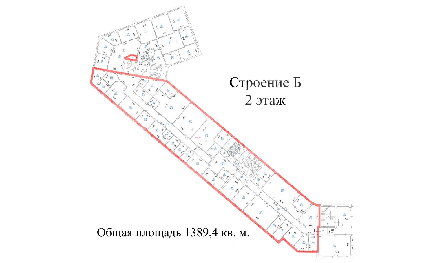 Этот лот состоит из нескольких помещений: 1389 кв. м. и 383 кв. м.