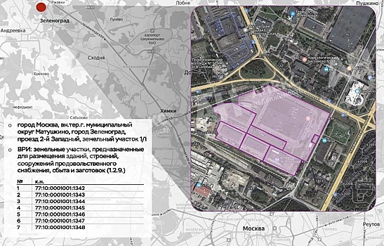 Лот №997162 Продаётся складской логистический комплекс в городе Москва (Зеленоград), муниципальный округ Матушкино — проезд 2-й Западный, земельный участок 1/1. Комплекс представляет собой 7 смежных участков в собственности общей площадью 13,4 га с объектами на них площадью 78 100 кв. м.
