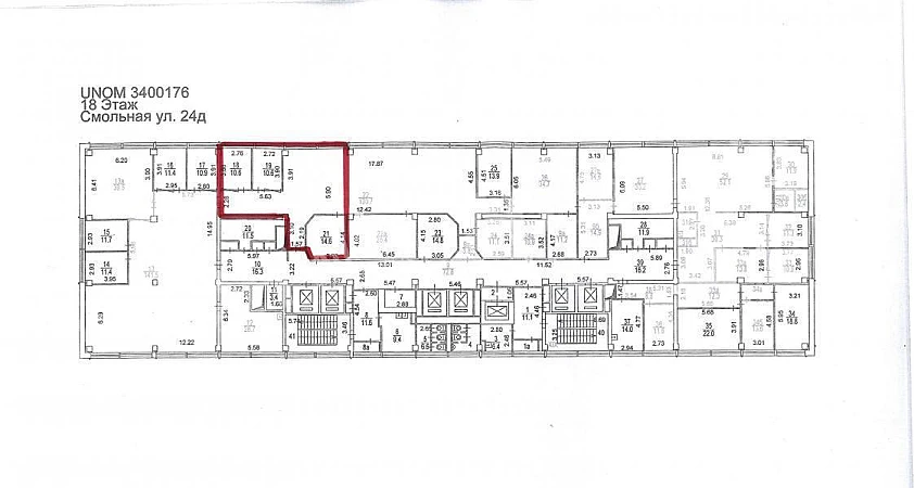 Лот №997988 В аренду предлагается современный офис площадью 94 м² на 18 этаже бизнес-центра «Меридиан» по адресу Смольная, 24Д.
