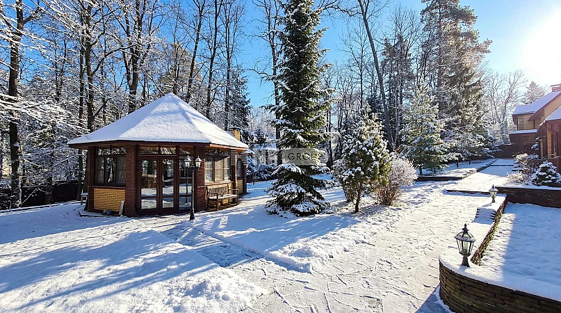 Земельный участок представляет собой готовый парковый ансамбль с тенистыми прогулочными дорожками, пролегающими между вековыми деревьями и ухоженными ландшафтными композициями. Многоуровневая организация территории с подпорными стенками и естественным рельефом создает живописные видовые перспективы, открывая панораму Москвы-реки и обеспечивая полную приватность владения.
