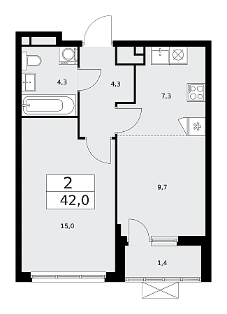 Продаётся 2-комнатная квартира, площадью 42,0 кв. м на 17-м этаже дома комфорт-класса в ЖК "Прокшино". Квартира с функциональной планировкой: большие окна, высота потолка 2,8 м, балкон.