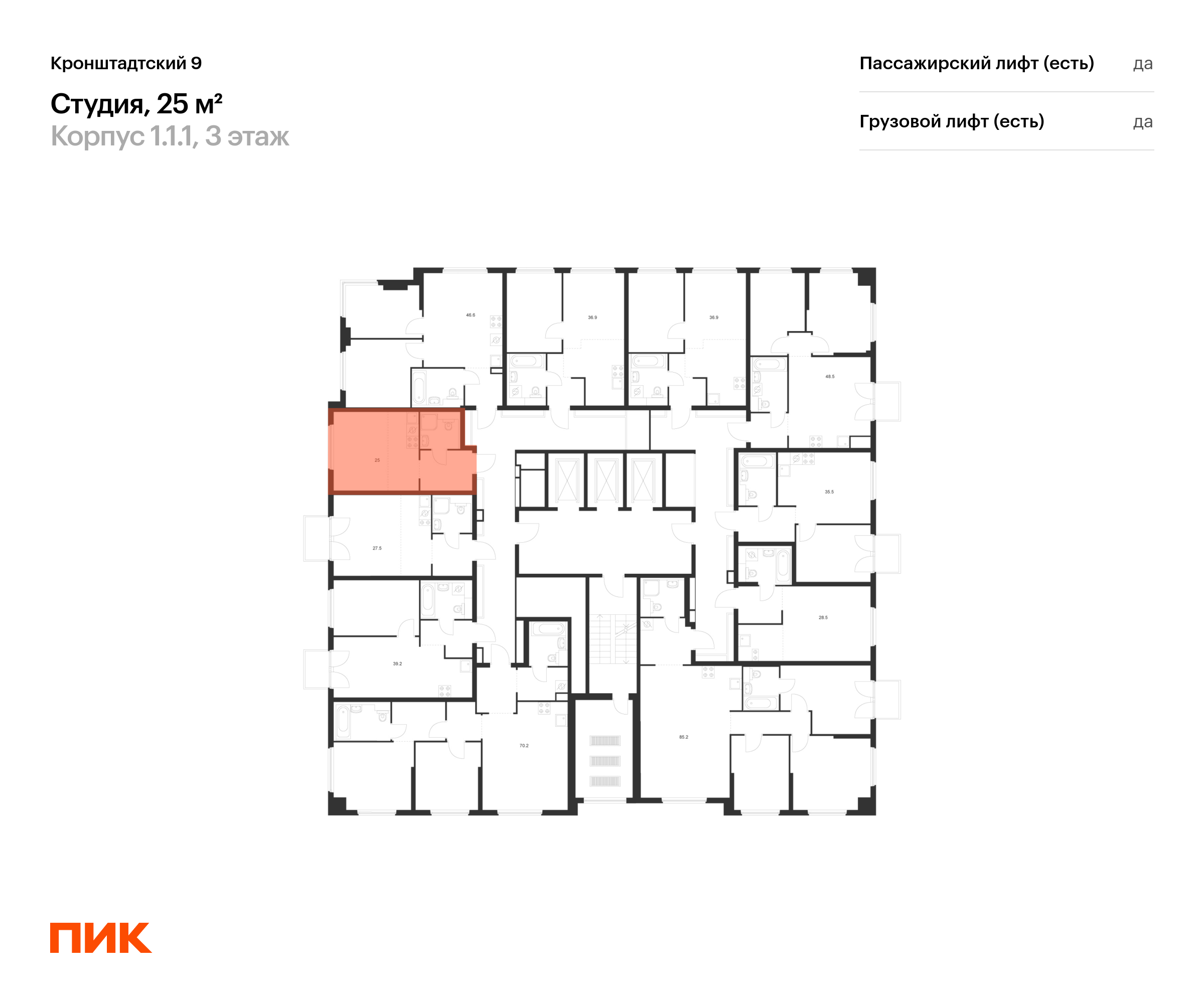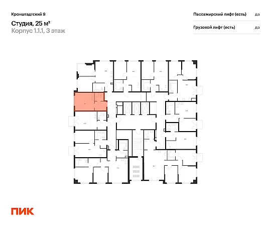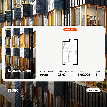 Продаётся квартира-студия площадью 25.00 кв.м на 3 этаже 12 этажного дома (Корпус 1.1.1, секция 1) проекта ПИК Кронштадтский 9. Светлый просторный подъезд на уровне земли, функциональная планировка, большие окна, с отделкой.