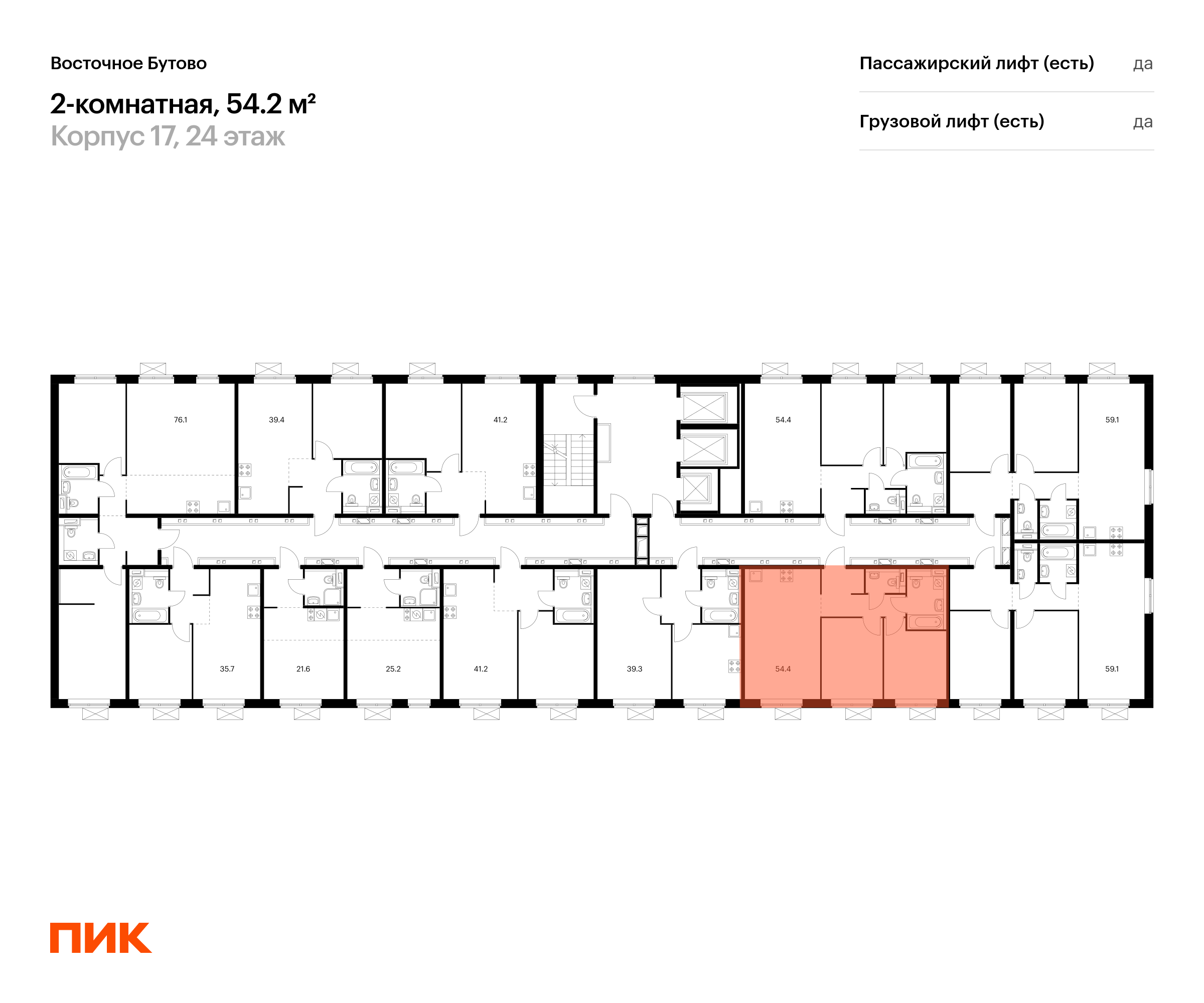 Продаётся 2-комн.квартира площадью 54.20 кв.м на 24 этаже 25 этажного дома (Корпус 17, секция 1) проекта ПИК Восточное Бутово. Светлый просторный подъезд на уровне земли, функциональная планировка, большие окна, с отделкой.