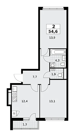 Продаётся 2-комнатная квартира, площадью 54,6 кв. м на 9-м этаже дома комфорт-класса в ЖК "Родные кварталы". Квартира с функциональной планировкой: большие окна, высота потолка 2,95 м, балкон.