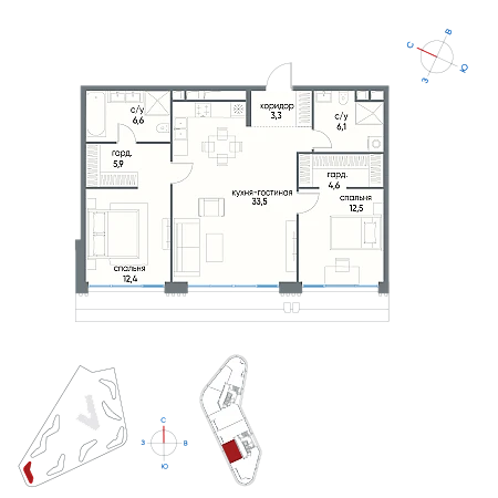 Стоимость квартиры со скидкой 15% при 100% оплате 60546435 руб.