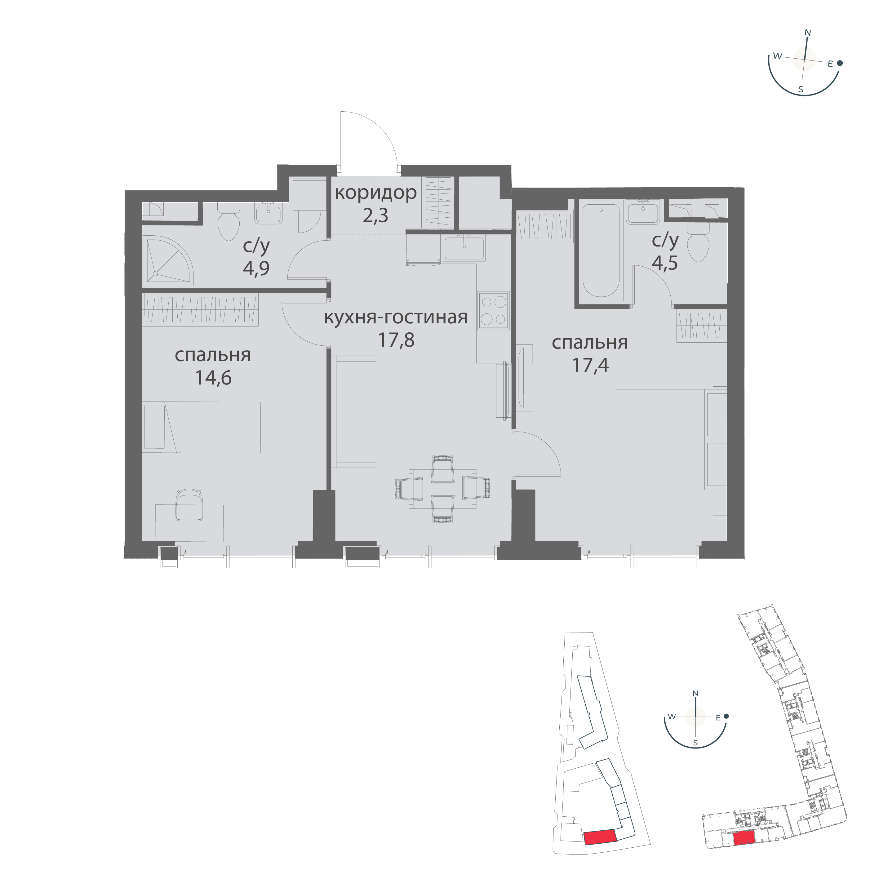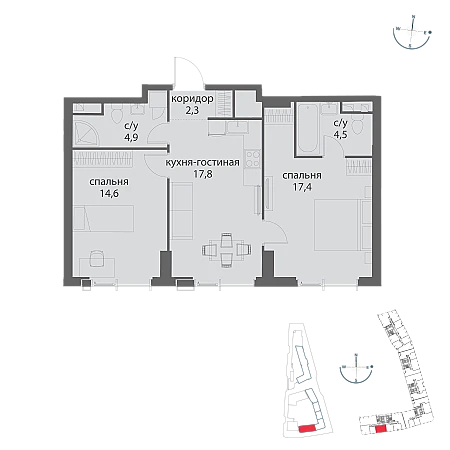 Купить 2к квартиру 61 м²