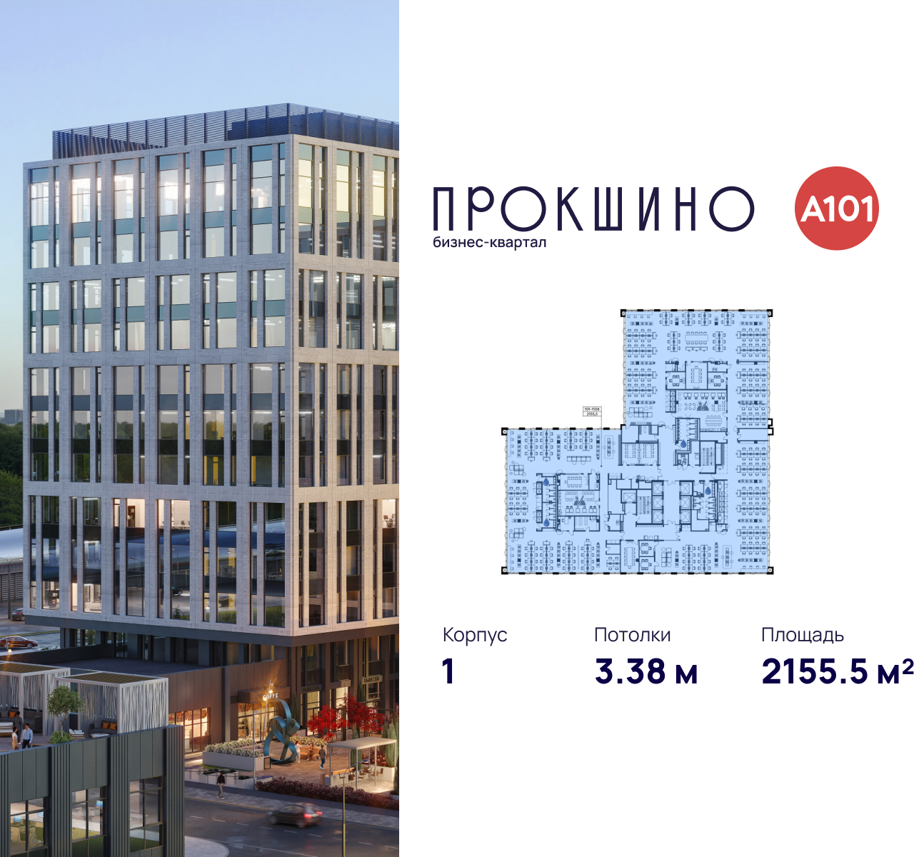 Сдаётся офисный этаж площадью 2 155,5 кв. м. в Бизнес-квартал «Прокшино» класса А.