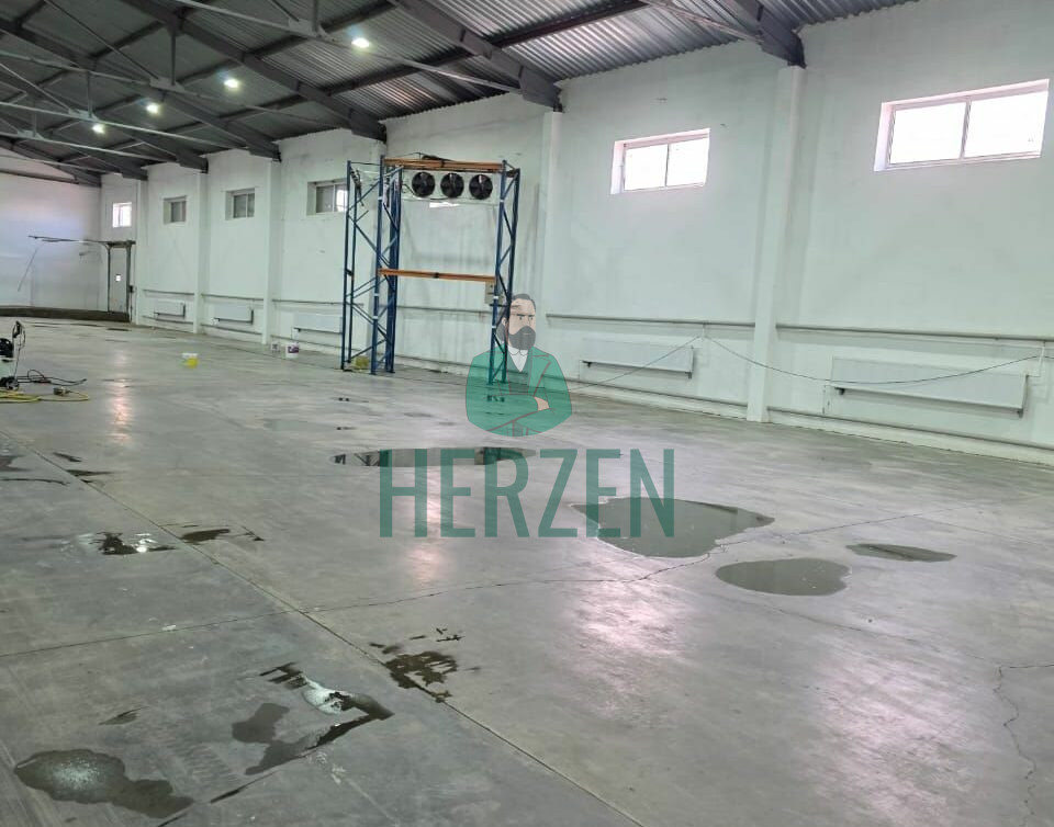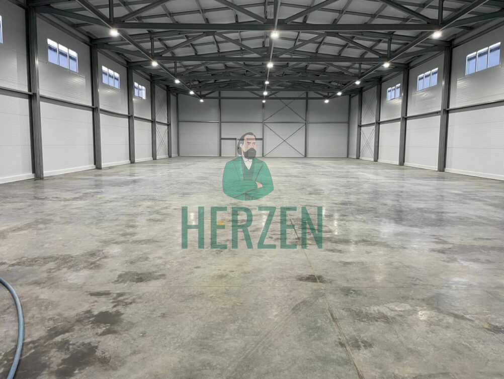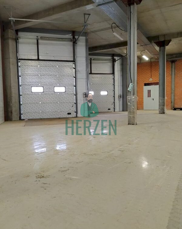 Ровный бетонный пол с антипылевым покрытием.