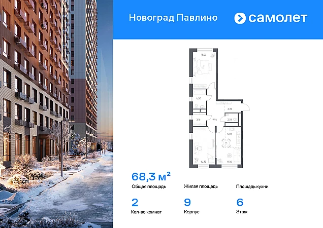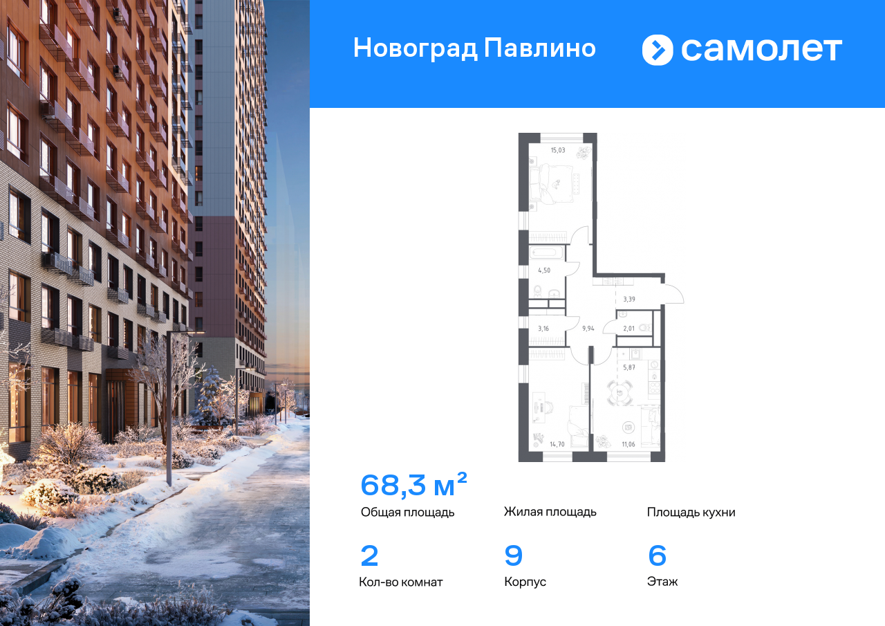 Строим кварталы для жизни с заботой о будущем. Предлагается 2-комнатная квартира комфорт-класса 68,3 кв.м в корпусе 9 на 6 этаже, в ЖК «Новоград Павлино»