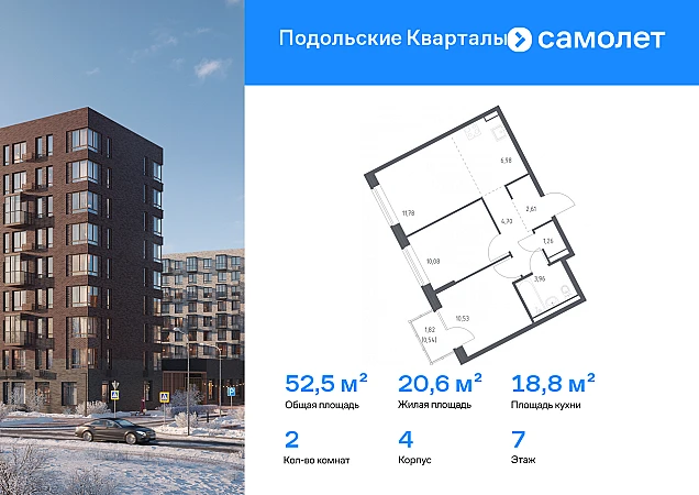 Строим кварталы для жизни с заботой о будущем. Предлагается 2-комнатная квартира комфорт-класса 52,45 кв.м в корпусе 4 на 7 этаже, в ЖК «Подольские Кварталы»
