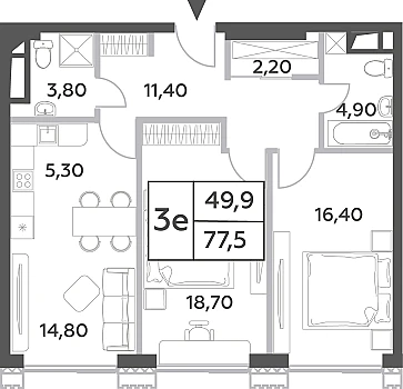 Квартира без отделки. Доступность опции «отделка» и возможность комплектации мебелью и декором уточняйте у застройщика.