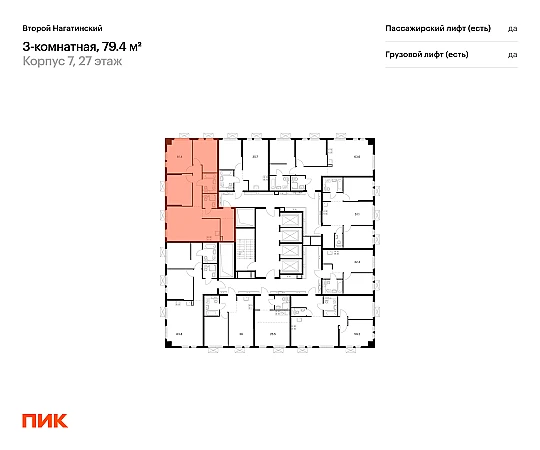 Продаётся 3-комн.квартира площадью 79.40 кв.м на 27 этаже 33 этажного дома (Корпус 7, секция 3) проекта ПИК Второй Нагатинский. Светлый просторный подъезд на уровне земли, функциональная планировка, большие окна, с отделкой.