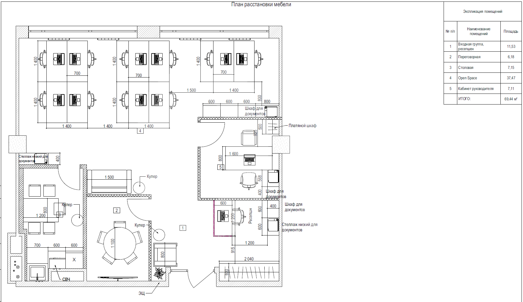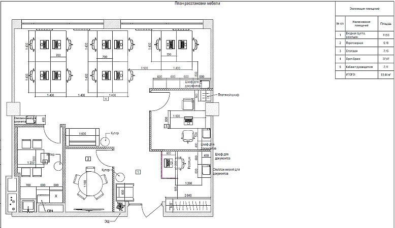 *Количество рабочих мест рассчитано автоматически: от 4,5 м2 на человека до 8 м2 на человека.