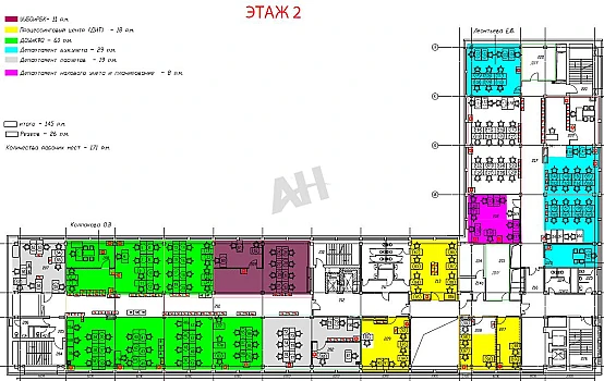 *Количество рабочих мест рассчитано автоматически: от 4,5 м2 на человека до 8 м2 на человека.