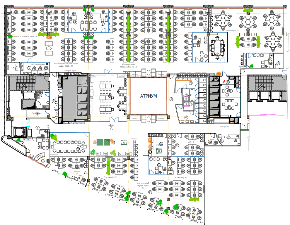 *Количество рабочих мест рассчитано автоматически: от 4,5 м2 на человека до 8 м2 на человека.